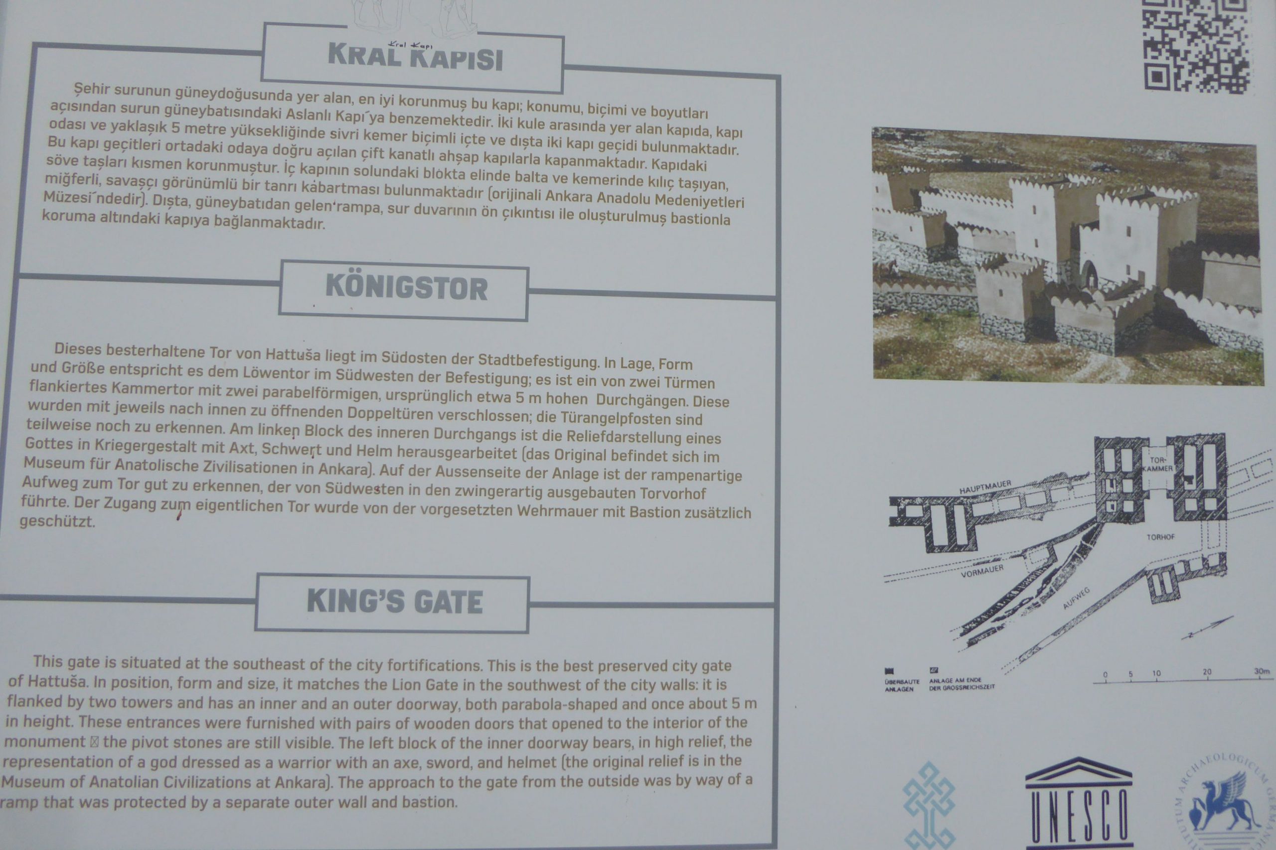 Weitere 3 Tore konnten innerhalb der Stadt bisher ergraben werden. 1986 wurde Hattuscha und das benachbarte hethitische Heiligtum Yazilikaya in die Liste des Weltkulturerbes der Unesco eingetragen.