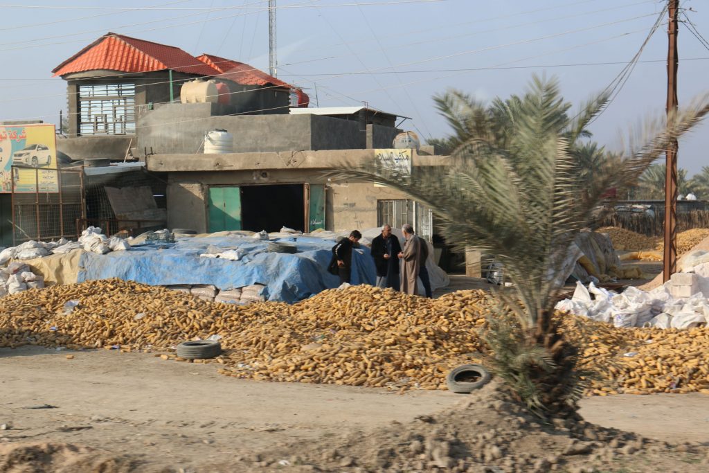 Nach Kirkuk sehen wir große Berge von Maiskolben an denen Frauen sitzen und die Hüllblätter entfernen. Auf langer Strecke immer wieder diese Maiskolbenberge.