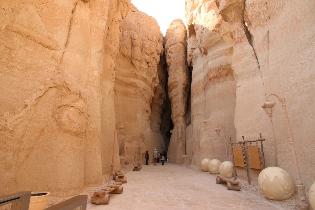 Vor der Abfahrt zu unserem heutigen Ziel besuchen wir gemeinsam die Höhlen von Al Qarah dem Unesco Weltkulturerbe. Diese Kalksteinhöhlen die durch Wind und Regen (Erosion) entstanden sind sollen mehr als 6 000 Jahre alt sein und von den ersten Besiedelungen stammen. Sie werden auch als „The Land of Civilisation“ bezeichnet. Einige sind riesig hoch und haben eine konstante Temperatur.