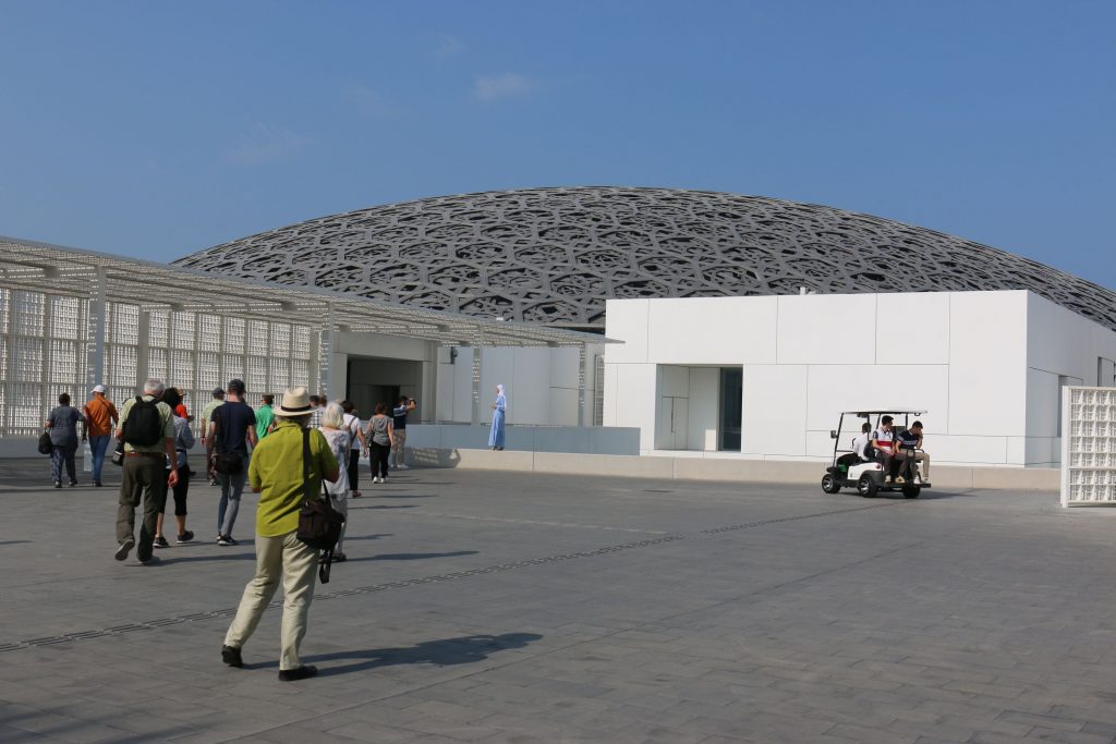 Heute steht ein Ganztagesausflug in Abu Dhabi an. Um 10 Uhr starten wir mit dem Bus. Unser Stadtführer heißt Peter und ist Holländer. Er spricht sehr gut deutsch. Als erstes geht es auf eine Brücke von wo wir auf die Formel 1 Strecke schauen können und weiter zu den Gebäuden der Rennfahrställe. Das Logo von Ferrari ist oben auf dem Dach zu erkennen. Am Ende der Straße ist der Turm der königlichen Familie zu sehen, die hier das Geschehen verfolgen. Es geht zurück über die Brücke, die man nur bei gutem Willen der Wärter befahren darf und weiter zum Louvre. Hier steigen wir aus und gehen mit Peter hinein, der die Karten hat. Danach laufen alle im eigenen Tempo. In 1 ½ Stunden sind alle wieder am Bus. Ein sehr großes Museum mit Objekten aus aller Herren Länder. Um den Namen „Louvre“ zu benutzen muss der Scheich 30 Mill. Dollar jährlich bezahlen für 30 Jahre lang und alles im Voraus.