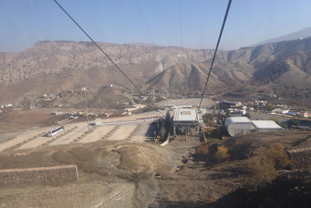 Morgens geht es um 8 Uhr mit dem Bus in den berühmten Rawanduz-Canyon bzw. nach Sila. Unterwegs besuchen wir noch einen Wasserfall. Die Berge sind grandios, zerklüftet, man sieht die Gesteinsschichten, die sich durch die Eruption hochgedrückt hat. Im Canyon fahren wir mit der Seilbahn die eigentlich wegen Reparatur stillgelegt ist nach oben auf ca. 2000 m.