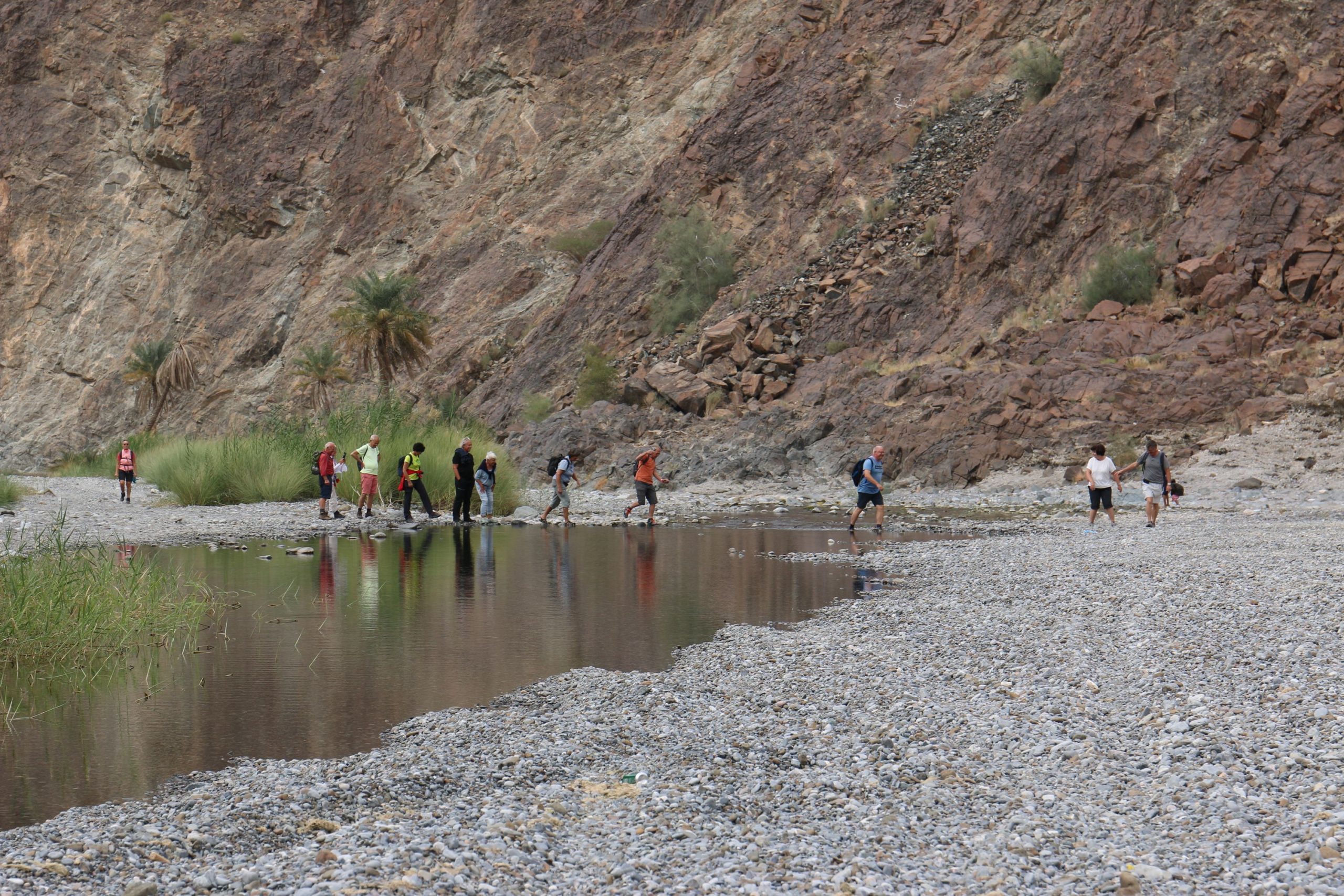 Um 14.30 Uhr ist eine Wanderung von 2 – 3 Stunden angeboten die durch das Wadi führt. Immer auf dem Stein- und Kiesweg entlang.