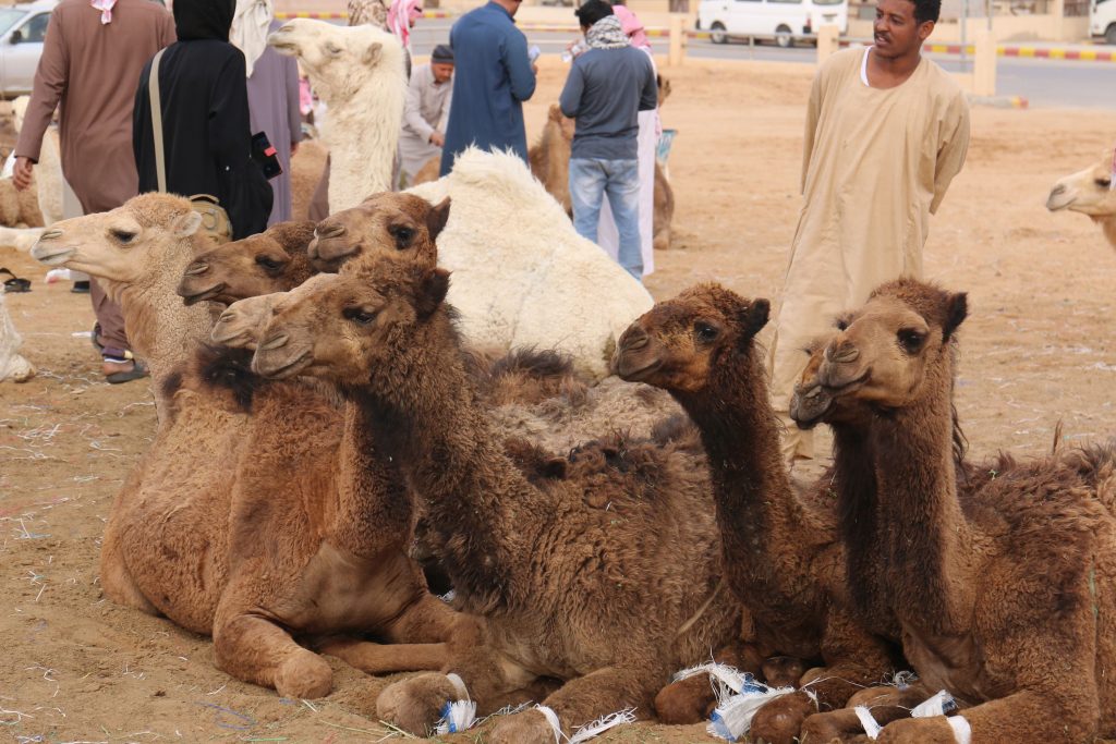 Als erstes Ziel haben wir Old Al Khabra angesteuert, ein Heritage Village. Wir kommen um 14 Uhr dort an, aber es öffnet erst von 16 Uhr bis 20 Uhr. Daher machen wir hier nur unsere Mittagsrast und fahren dann weiter nach Burraidah zum Kamelmarkt, der aber erst morgen früh stattfindet. Auf dem Gelände dürfen wir nicht stehenbleiben. Wir treffen einige aus der Gruppe die sich hier schon umgeschaut haben und nicht bleiben wollen weil sie meinen, die Tiere würden hier sehr leiden. Sie wollen auch morgen früh nicht von Alis Farm herfahren. Wir schauen uns die Tiere in den Gattern an. Ein sehr großes Gelände mit schätzungsweise 40 Gattern. Man sieht Muttertiere mit Kleinen, männliche Tiere und Jungtiere für sich.