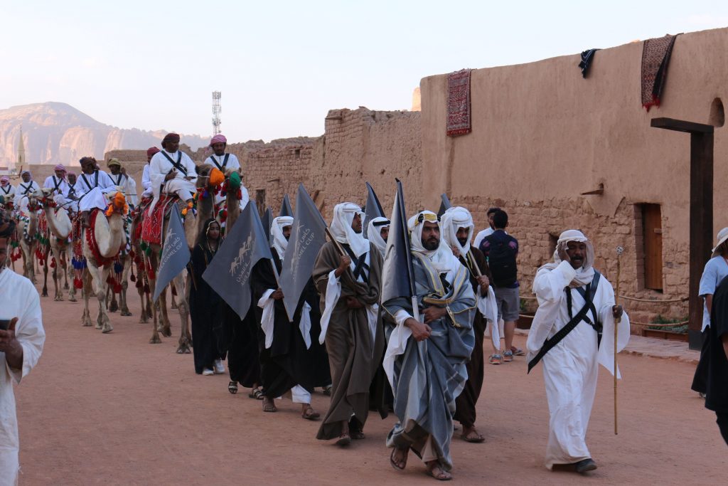 Nach 3 Stunden bringt uns ein Bus wieder zum Winterparkplatz zurück. Dort essen wir erst einmal eine Kleinigkeit und fahren dann auf einen großen Parkplatz vor dem Ortsteil Old Town von Al Ula. Mit einem kleinen Shuttle-Auto werden wir in die Stadt gefahren, wo gerade ein Fest gefeiert wird. Wir sehen Trommler und später hübsch geschmückte Kamele mit ihren Reitern in traditioneller Kleidung. Dann wird auch die Pforte zur Old Town geöffnet und wir können traditionelle Restaurants, Handwerkskunst, hübsche kleine Läden mit verschiedenen Angeboten, Musikgruppen und viele andere Angebote begutachten. Es ist gut besucht und überall sitzen Einheimische in den Lokalen. Die Frauen sind alle schwarz gekleidet mit Schleier.