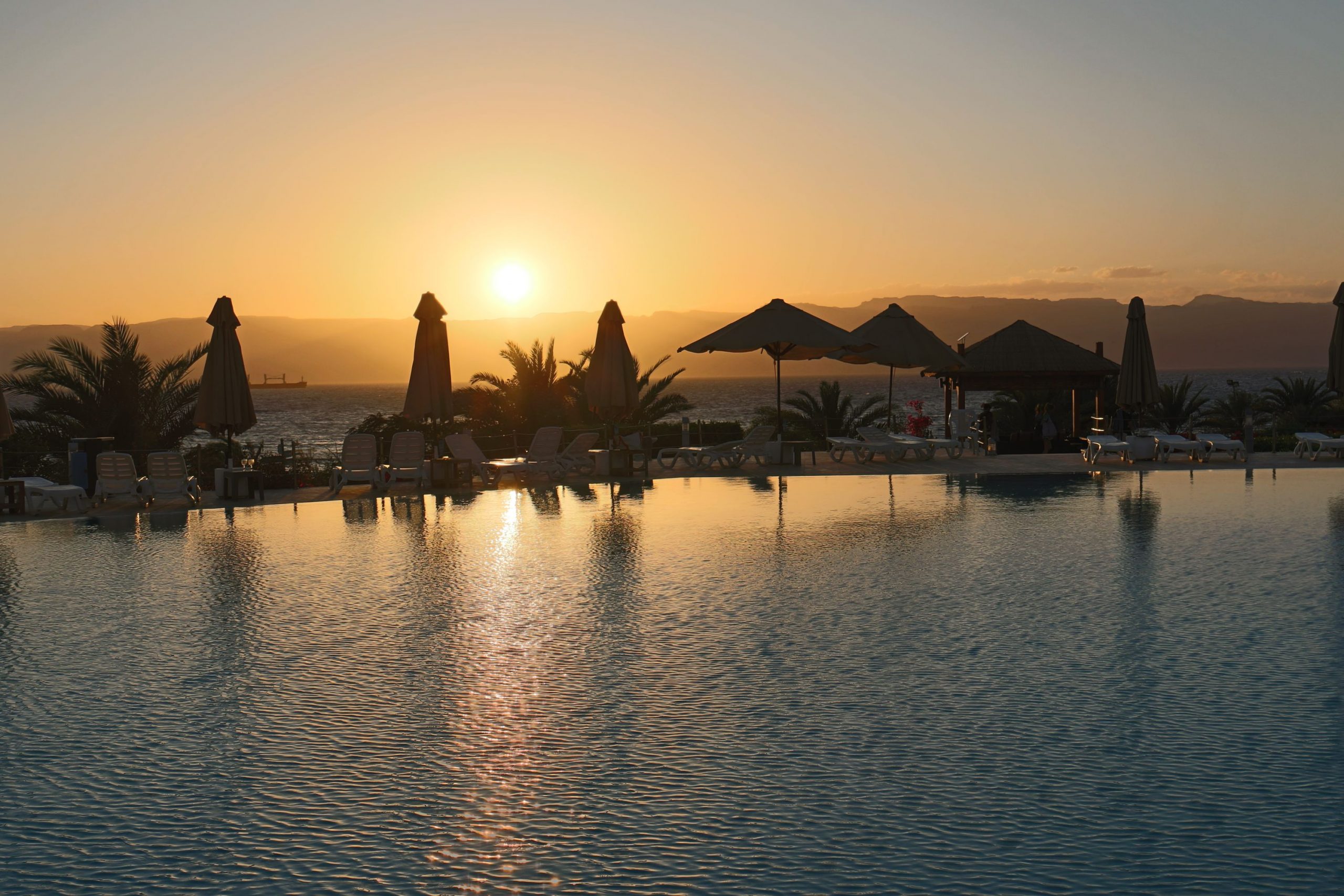 Um 8.15 treffen wir uns am Sammelpunkt kurz vor der Grenze und fahren gemeinsam den Saudischen Grenzposten an. Eigentlich sollte es schnell gehen, da wir das Land verlassen und hier nichts kontrolliert wird. Aber es dauert endlos. Wir haben schon die Pässe gezeigt und sind weiter gewunken worden aber dann stehen wir geschlagene 3 Stunden und es tut sich nichts. Mal sollen wir in der Ecke parken, dann die Spur nehmen, dann noch einmal woanders. Vor uns sind 5 Reisebusse die abgefertigt werden müssen. Dieses Wochenende ist das letzte vor dem Ramadan und alle nutzen es noch einmal um ausgiebig zu feiern. Das hätte unser Landesguide Ali wissen müssen, der sich hier von uns verabschiedet. Wir wären auch gern 2 Stunden früher losgefahren, um nicht in sengender Sonne hier ausharren zu müssen. Ali hat keinen guten Job gemacht. Wir haben ihn so gut wie nie gesehen und vieles hat nicht geklappt. Dann geht es endlich weiter auf die jordanische Seite. Hier läuft alles zügiger. Unser neuer Landesguide Hannah, ein kleiner älterer Herr erwartet uns mit Jordanischen Dinar. 1 Jordanischer Dinar sind 1.30€. Wir müssen noch eine Autoversicherung abschließen und Einreisegebühren bezahlen und schon sind von den 150 JOD nur noch 30 übrig. Danach mit der abgeschlossenen Versicherung noch das Carnet de Passage abstempeln lassen und den Einreisestempel holen. Simkarten müssen wir mit unseren Pässen selbst an einem kleinen Häuschen besorgen, dann sind wir nach ca. 5 Stunden endlich durch und fahren noch gut 20 km bis kurz vor Aqaba zum Beach Resort, wo unser Stellplatz für die nächsten 3 Nächte vor dem Resort liegt. Wir stehen auf einer Anhöhe und sehen auf das Resort und die ganze Anlage herunter. Gepflegte Blumenrabatten, Palmen, 2 Pools, Restaurants, Liegestühle im Innenbereich und direkt am Meer, wo es auch einen Steg ins Wasser gibt. Wir haben ein Bändchen bekommen. Damit können wir die Toiletten und Duschen benutzen, in den Innenbereich und zum Wasser kommen wir damit allerdings nicht sondern müssen dafür je Tag und Person 13 € extra bezahlen, sofern wir hinein möchten.
