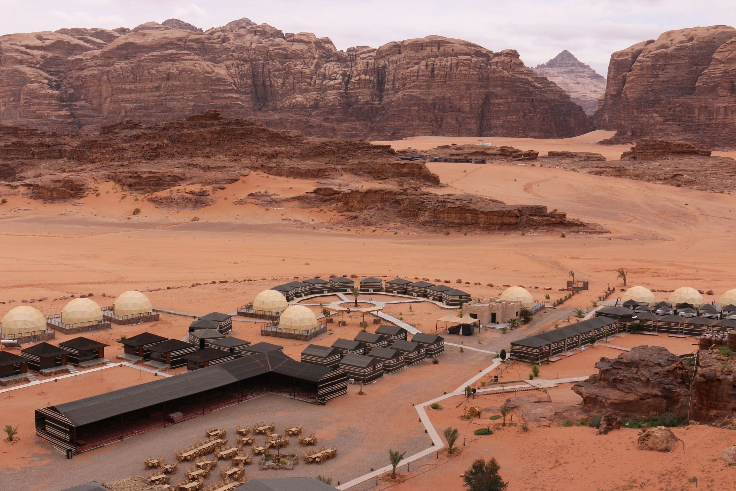 Dann geht es auf ins Wadi Rum. Auf dem Weg besichtigen wir noch eine alte Dampflock die 1907 erbaut wurde, die Waggons sind noch älter und aus dem Jahre 1903. Die Bahnstrecke verbindet Aqaba mit Wadi Rum. Kurz nach 14 Uhr erreichen wir unser Wüstencamp Hillawi wo wir 2 Nächte stehen. An die 100 hausähnlicher Wohnzelte sind hier zu mieten. Die Einrichtungen sind von spartanisch bis einfach. Es gibt ein großes Restaurantzelt wo wir heute Abend ein landestypisches Gruppenessen einnehmen das in der Erde auf heißen Steinen gebacken wird. Aber jetzt haben wir erst einmal alle warmen Sachen aus der Heckgarage wieder ins Womo getragen. Hier ist es lausig kalt bei 13° und ein eisiger Wind. Nachts soll es um die 0° werden.
