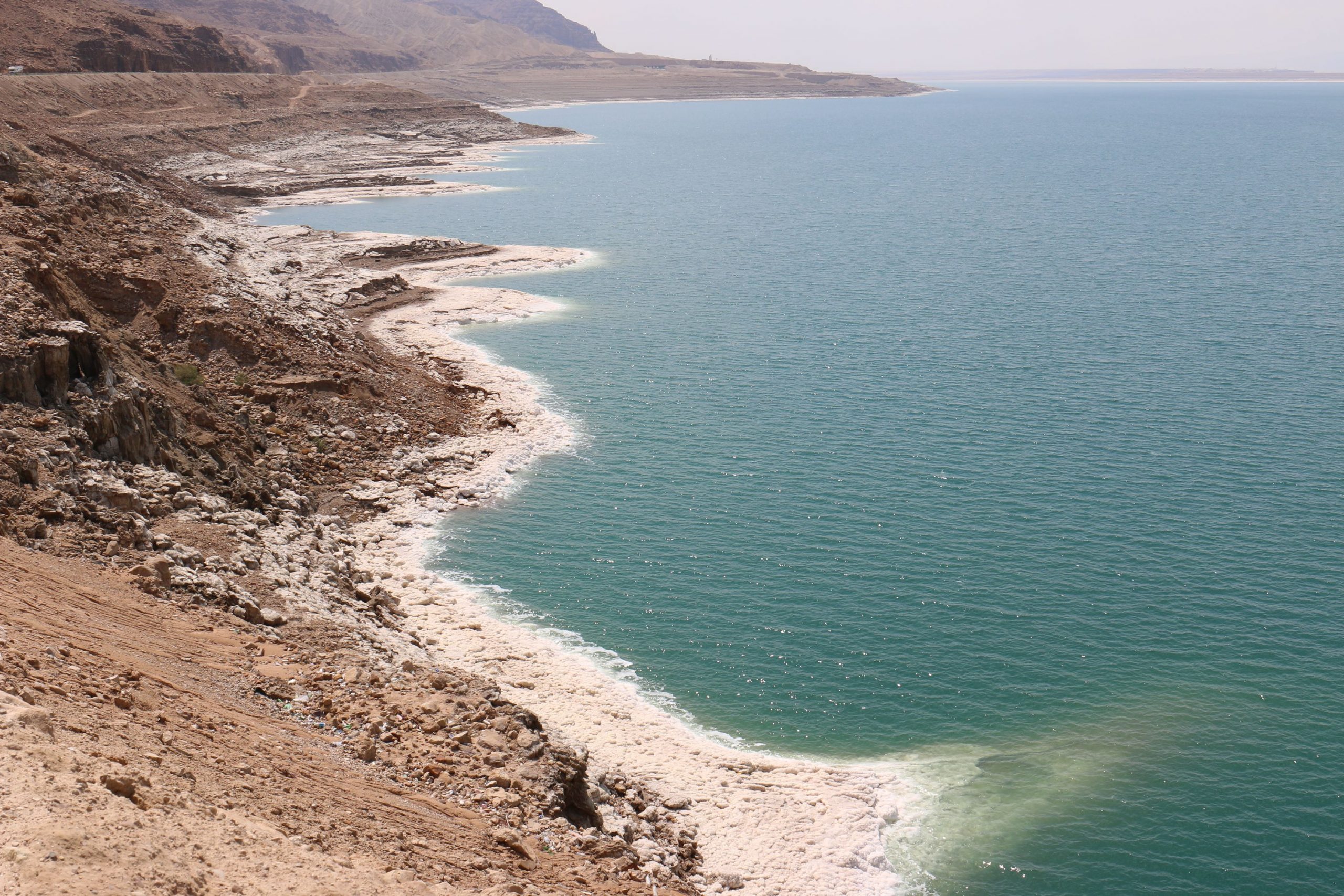 An einem Aussichtspunkt sehen wir den Felsen „Lots Frau“, was sich auf die Geschichte aus der Bibel bezieht wo Lots Frau zur Salzsäule erstarrt, weil sie sich umgeschaut hatte, was sie nicht sollte. An der Mojib Brücke kann man in die Schlucht des Wadi Mojib blicken. Allerdings ist der Parkplatz gesperrt und man sieht es nur im Vorbeifahren. Ein kleines Rinnsal Wasser ergießt sich aus dem Wadi in das Tote Meer.
